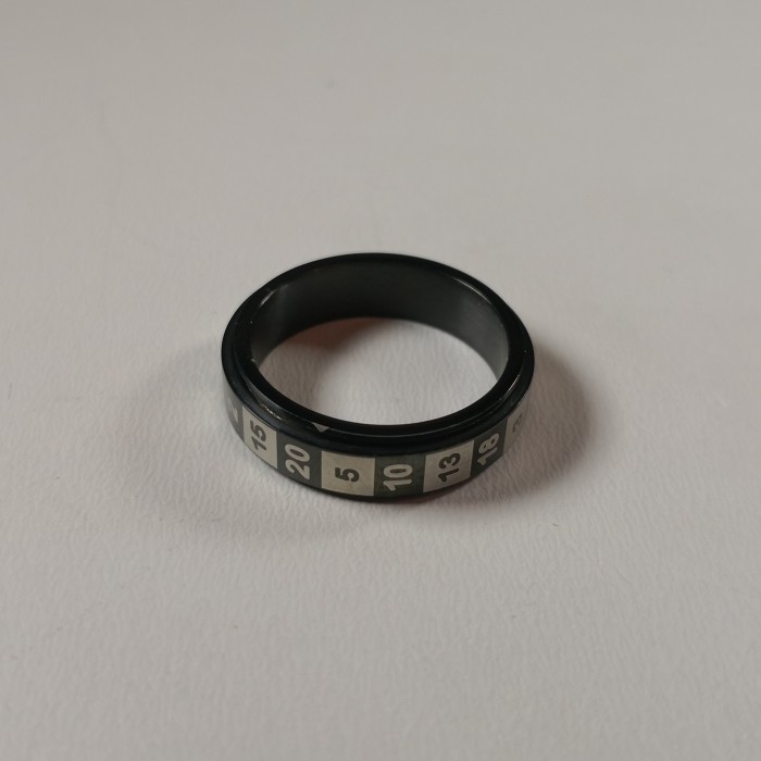 The middle ring spins free to allow you to 'roll' a D20, the outer ring has white arrow markers to show the result